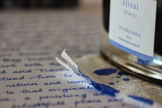Today's ink is Ajisai from Iroshizuku family which is very talented to make us fall in love with the bottles and colors. Ajisai is the name for hydrangea in Japan and you cannot imagine how it matches with this name. I really liked the ink so I couldn't help myself to post a lot photos (of course there is also a share of my new lens)