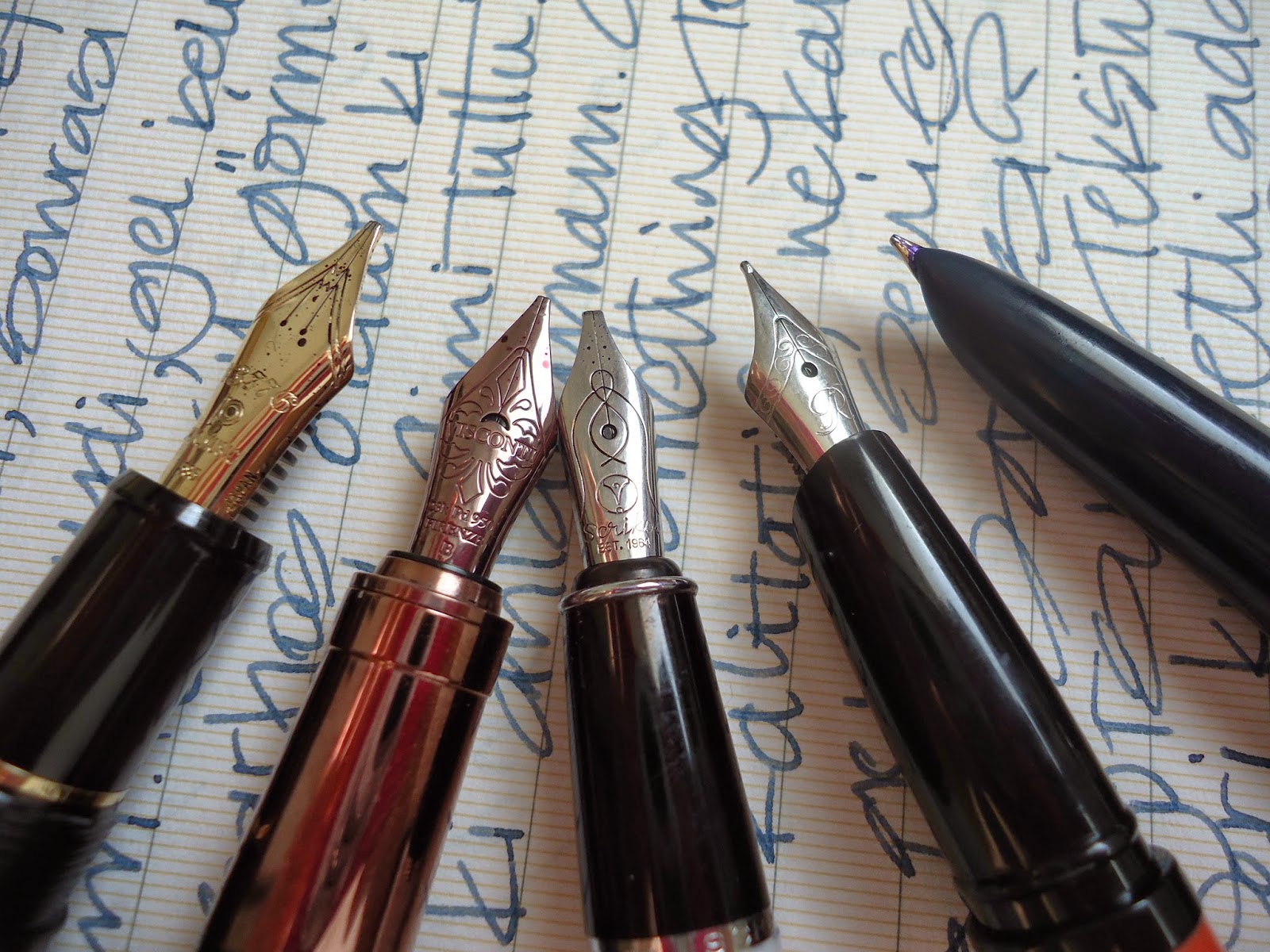 Haftanın ortasında bugün mürekkeplililer postu yapayım istedim. Hem biraz da neler olup bitiyor haber verme fırsatım olur diye düşündüm. 5 kalemle karşınızdayım. İlk olarak Platinum 3776 Music Nib. Bu kalem uzuuuun zamandır aklımda ve hayalimdeydi. Geçen aylarda nihayet gözümü kararttım ve elimden bırakamıyorum. İçinde ise Sheaffer Skrip siyah mürekkep var. Çok ıslak karakterde bir mürekkep. İkinci kalemimiz blogumun 2. yaşı için kendime hediye ettiğim Visconti Michelangelo, 23 ayar paladyum ucu ve bronz aksamları ile beni kendine aşık etti. (Sadece medium'la değiştirsem mi diye düşünüyorum) İçinde kalemin maskülen görüntüsünü kırmak üzere Sailor'ın pembe mürekkebini kullandım.Üçüncü kalemimiz Scrikss'in kaligrafi setinden 1.5 uç. Ben bu seti seviyorum arkadaş! İçinde de Diamine Bilberry var. Mora çalan, sarı revnaklı, muhteşem satürasyonlu bir mürekkep. Dördüncü olarak Rotring Surf. İnce ucuna rağmen çok güzel yazan bir kalem. Ve son olarak efsane kalem Parker 51. İçinde Caran d'Ache'ın yeni serisinden Idyllic Blue mevcut.