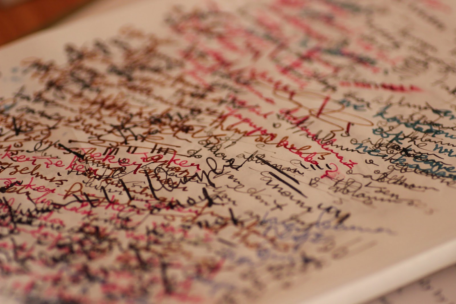 Şükret demişken onun el yazısı ile tanıtmak lazım defteri değil mi? Hayır karınca duası değil, muhtelif mürekkep ve kalem denemeleri yukarıdaki. Kağıdın her tarafını lebaleb doldurduk. Bakalım arka tarafta neler oldu?
