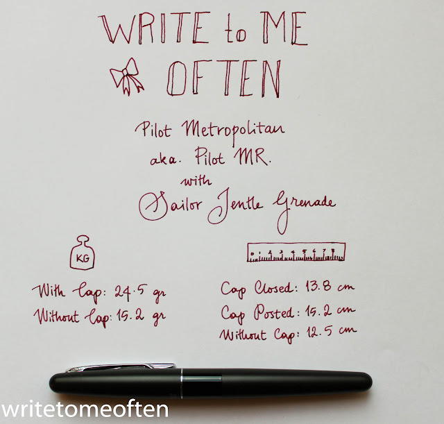 Pilot Metropolitan gümüş, şampanya ve siyah olmak üzere üç renkte geliyor. Ayrıca, parlak kuşak kısmında desenler olanlar da mevcut. Ben mat siyah ve kuşak kısmı düz olanını tercih ettim. Kalem oldukça ortalama ağırlıkta ve oldukça ortalama uzunlukta. Ne ağır, ne de çok hafif. (Ama yine de hafif tarafa daha yakın) Boyutları da gayet makul seviyelerde.