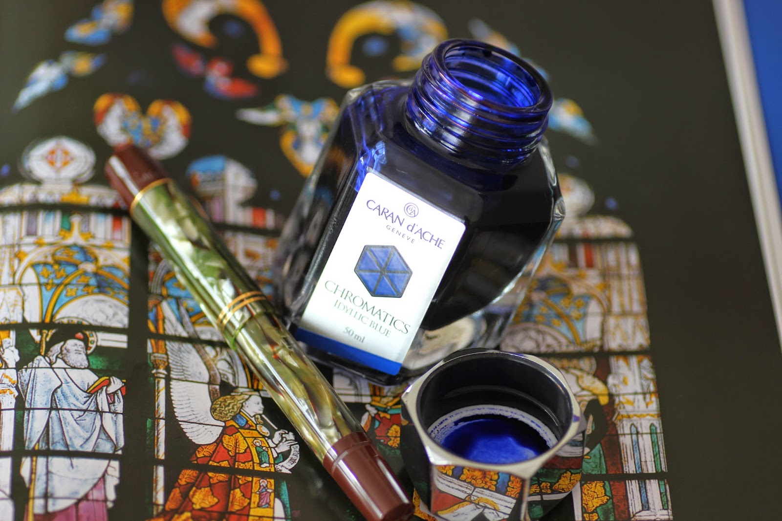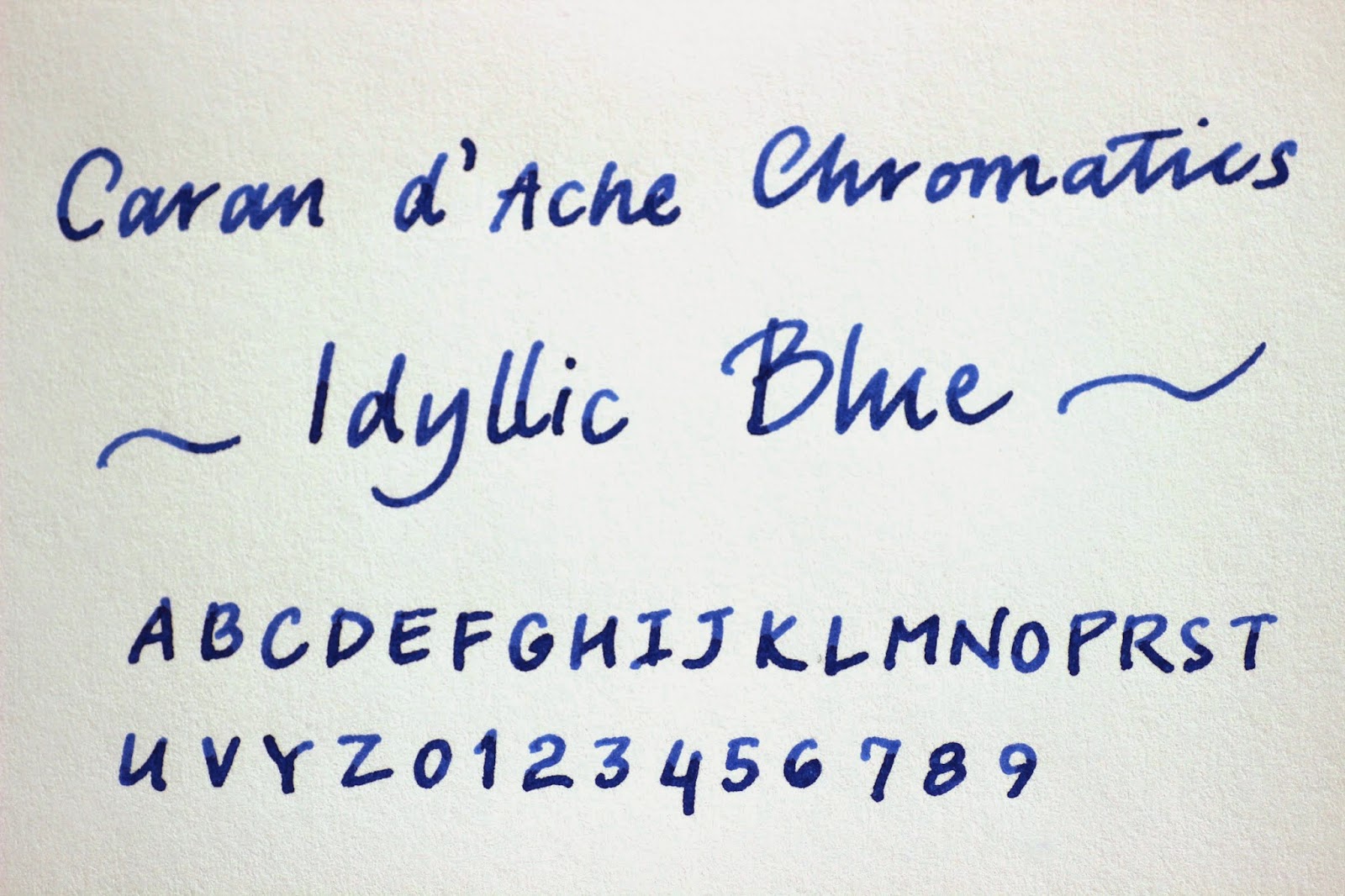 Sanırım, idyllic blue yani pastoral/huzurlu mavi ismi bu mürekkebi en iyi tanımlayan şey olmuş. Caran d'Ache Idyllic Blue, huzurlu, dingin, sakin ama kağıtta kendisini belli eden bir mavi. Ne ben buradayım diye bağırıyor ne de solgun baygın görünüyor.
