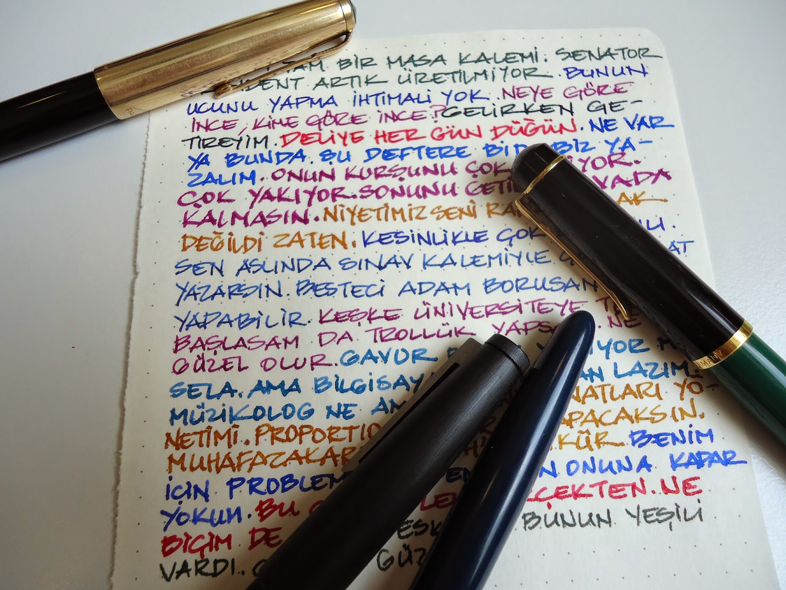 Günün fotoğrafında çok fazla mürekkep, çok fazla kalem var. Arkadaşlarla oturulan bir akşamdan havada uçuşan diyaloglar... Arada yazıyorum. Sonradan dönüp okuduğumuzda o akşamı hatırlamak için muhteşem bir yol.