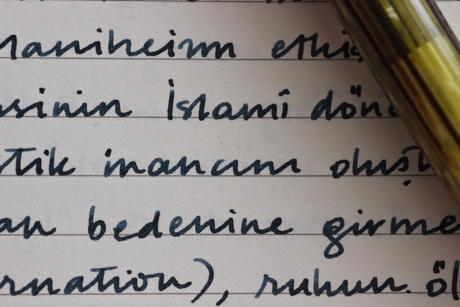 Bu haftanın mürekkebi Rohrer&Klingner markasının Verdigris'i. Almanca bir kelime olan verdigris Fransızca vert (yeşil) ve gris (gri) kelimesinin birleşiminden oluşuyor. Zaten bizim mürekkebimizde de yeşilin tonlarını görmek mümkün. Ancak griyi seçebildiğimi söyleyemem.