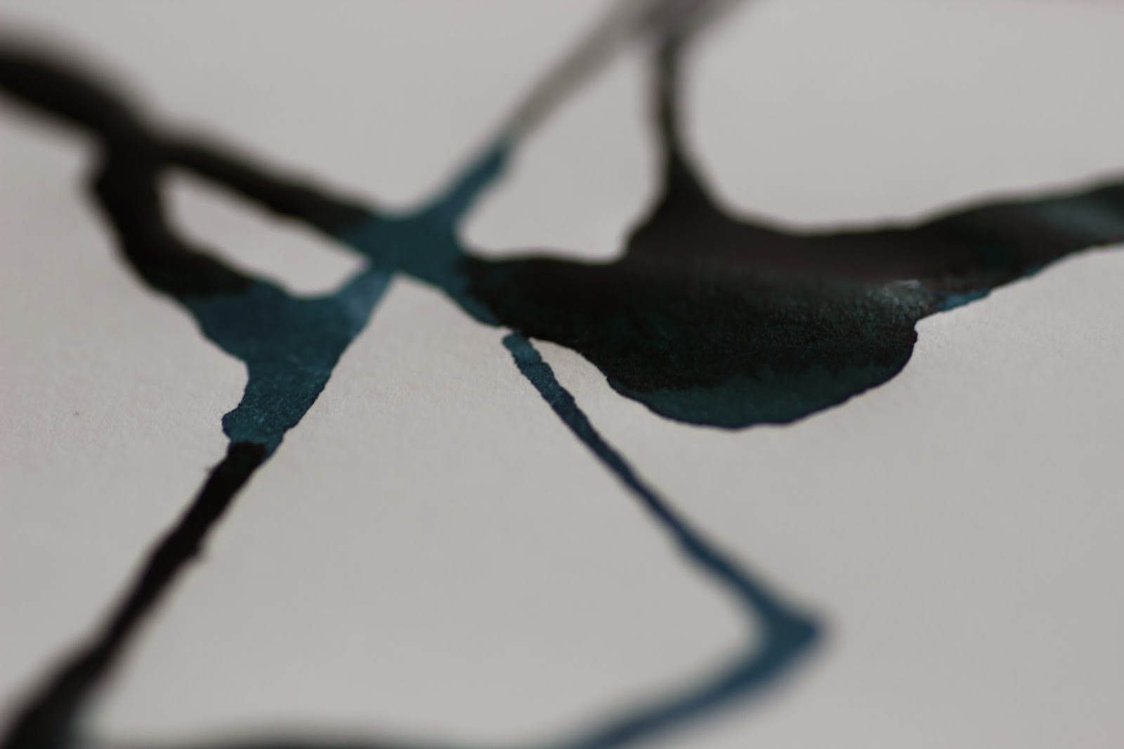 Saturation is high. While you are thinking "what a lovely blue-black" then you just realize it is actually dark dark dark green. Shading is medium, not good, not bad. However, there is a little problem that it tends to feather on cheap paper.