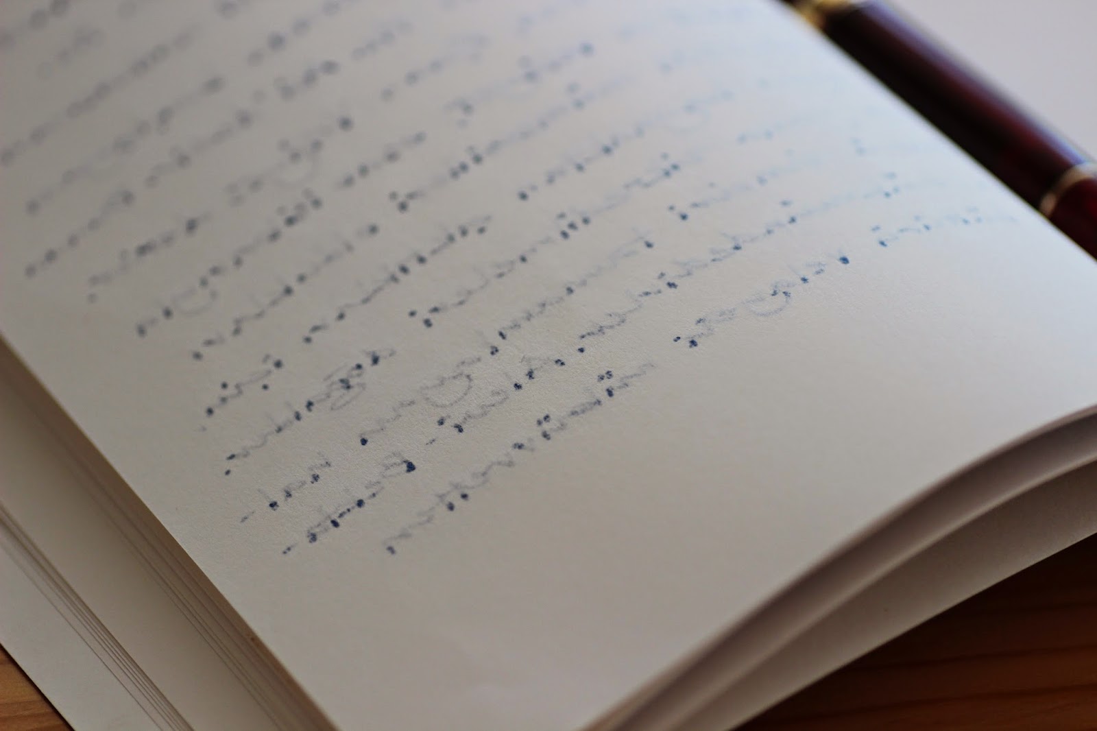 Daha sonra aynı deftere Diamine Majestic Blue ile mürekkeplediğim Platinum 3776 Broad uçlu kalemimle denedim. (Gördüğünüz gibi aman aman kalın uçlu bir kalem değil)