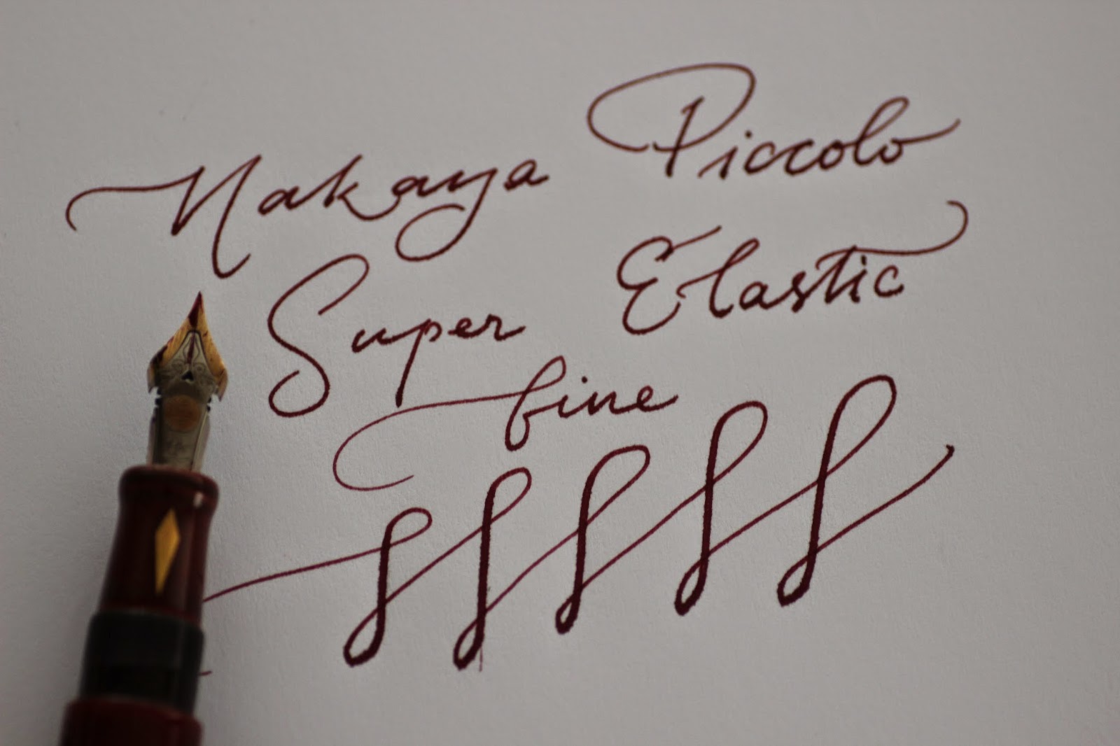 Bu kalemin ucuna gelirsek, Bu uç gördüğünüz gibi uç kanatlarından kesilmiş. Bu kesimin amacı ucu daha esnek, Nakaya'nın tabiri ile elastik hale getirmek. Bendeki bu uç da Super Elastic Fine olarak geçiyor. Ancak bu elastik ya da esnek tabirinden, vintage kalemlerdeki gibi bir esneklik anlaşılmasın. Uçta çok hoş bir yaylanma hissi ile az miktarda çizgi varyasyonu mevcut. Ancak gerçek esneklik bu değil :)