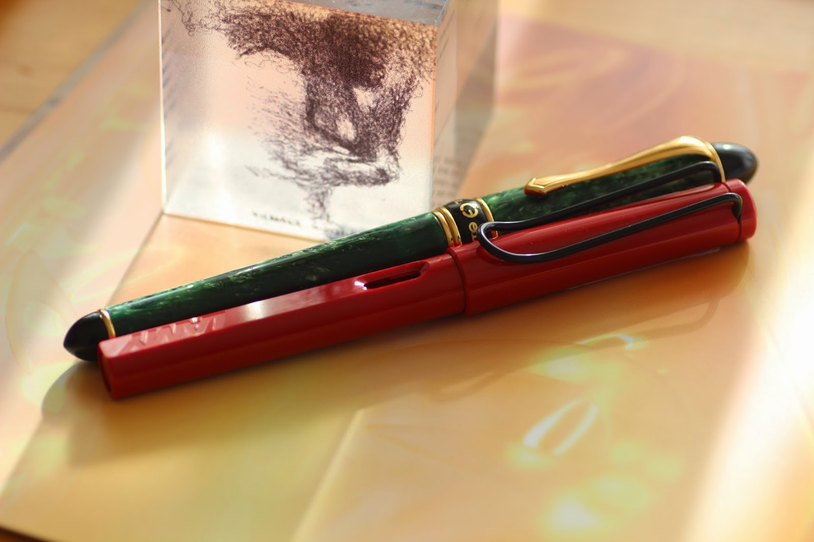 Bana çok sevgili bir okuyucum aynı zamanda arkadaşım tarafından gönderilen bu kalem yeşil renkte gözalıcı bir reçine gövdeye sahip. El yapımı olan bu kalemde reçine dışında siyah ve altın sarısı aksamlar kullanılmış.