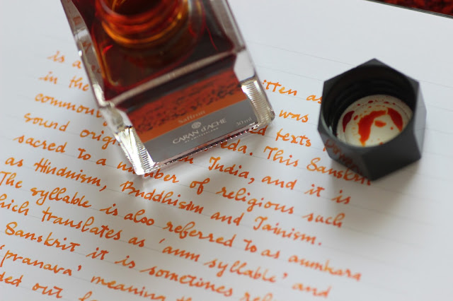 Caran d'Ache Saffron qualifies its name, such a great orange. It is probably the most popular orange ink right after Noodler's Apache Sunset. Great flow and being smooth wet and being accessible compared to Noodler's inks makes it a such popular ink.