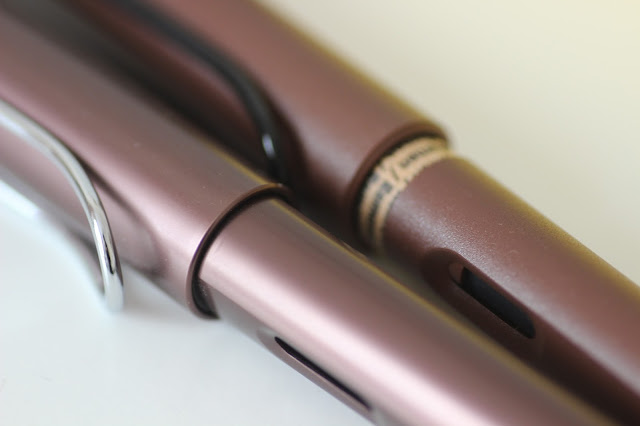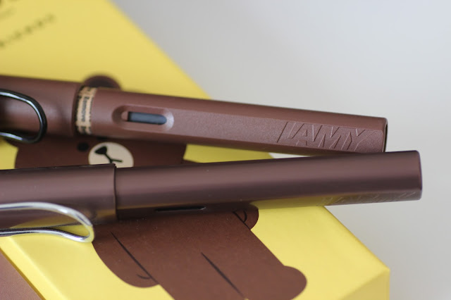 As you can see, the body of the pen is dark brown. When compared with the 2010 limited edition Al-Star Coffee, you can see that it has a darker, saturated color. Besides, it is not glossy and smooth as the regular Lamy Safaris'.