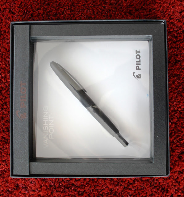 Pilot Vanishing Point is a fun fountain pen. Don't judge it by its all black, gloomy, mourning outfit. With just a click, nib is out. With another click, it is in. It is very revolutionary even kind of magical for people who doesn't follow fountain pen world. (What kind of sorcery is that!) Since matte black is a special edition, it comes with a big box. When you open the box, the first thing you see is a brief summary of the pen's qualifications.