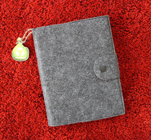 Ofix.com'dan gelen ikinci defter ise Ecologic markalı defterdi. Bu defter, keçe bir kılıftan, içindeki spiralli, sert plastik kapaklı, değişebilir iç defterden ve yanında bir tükenmez kalemden oluşuyor. Lastik yerine çıtçıtla kapanan yapıda olduğu için ben bu defteri ayrıca sevdim.