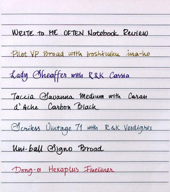 I also tested this notebook with the same pens I tested Note Eco Notebook: Pilot VP Broad, Lady Sheaffer, Taccia Savanna, Scrikss Vintage 71, Uniball Signo Broad and Dong-a Hexaplus Fineliner.