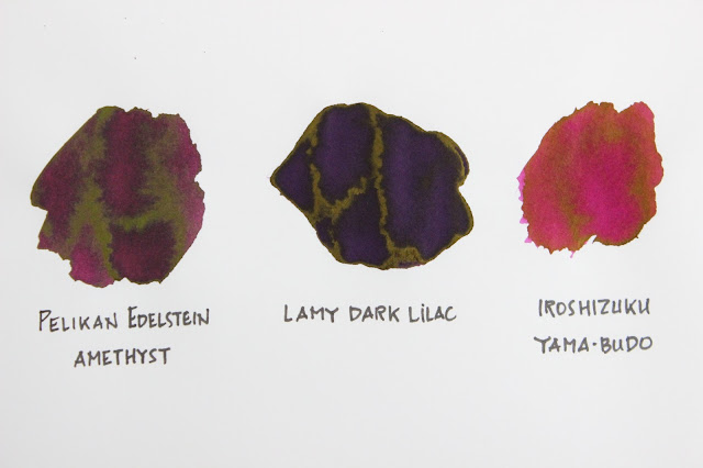 | Edelstein Amethyst Sheen vs Lamy Dark Lilac Sheen vs Iroshizuku Yama Budo Sheen |