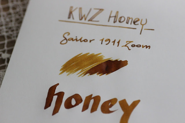 One of the most famous inks of KWZ is this one: KWZ Honey. This is a warm, golden toned brown. And it is made for the people you loves shading in the inks. And let me tell you, the most amazing feature about KWZ inks are it has a great vanilla smell due to a substent used in. You may want to lick your nibs.