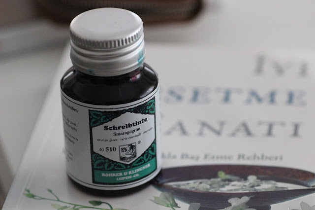 Bu hafta Röhrer Klingner'in Smaragdgrün'ü var elimizde. Eğer adını yanlış yazarsam kusuruma bakmayın. Rohrer Klingner mürekkeplerden daha önce de bahsetmiştik.