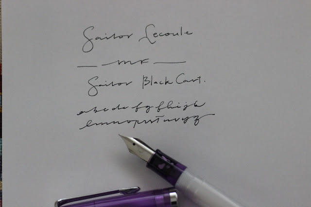 Sailor Lecoule hafif bir kalem. Boyut olarak da Kaweco Sporttan büyük, Lamy Safari'den küçük olmakla birlikte büyük ellere sahipseniz kapaklı kullanmak isteyebileceğiniz kalemlerden biri. Sailor Lecoule Sailor'ın giriş seviyesinde kullandığı çelik uçlarla geliyor. Benim elimdeki uç MF olarak geçen inceye yakın bir medium uç. Bu uçlar, özellikle Japon alfabesinin daha girift karakterlerini yapmak için uygunlar. Diğer Sailor kalemlerde olduğu gibi bu kalem de, Sailor'ın kendi kartuşlarını kullanıyor.