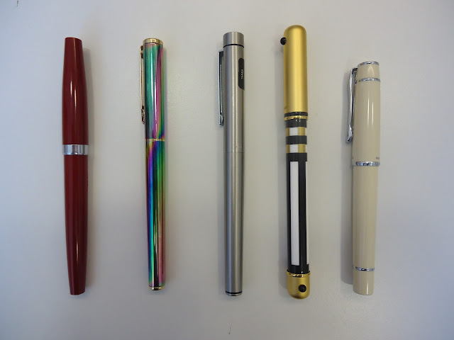 Sheaffer Agio Rainbow is mainly used for headlines so I couldn't consume the ink in it, Pelikan Edelstein Turmaline.