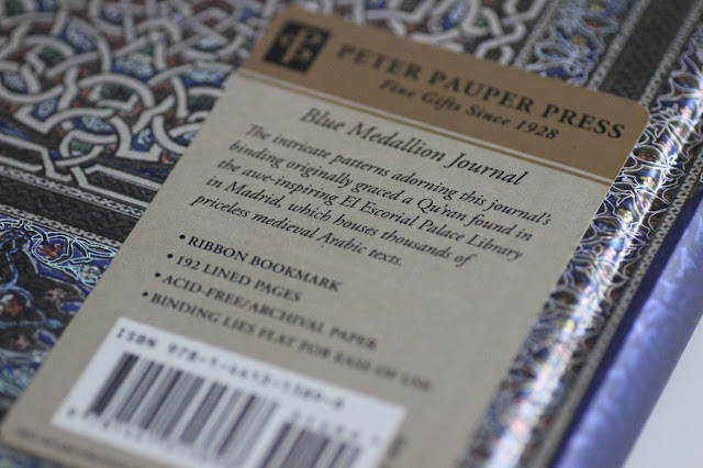 Like PaperBlank Notebooks, Peter Pauper Press has special covers with the explanations on the back. This notebook referred as Blue Medallion is a re-make of a holy Quran found in Madrid Library.